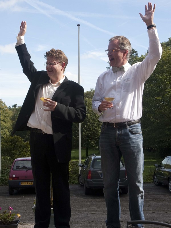 Nadat iedereen zich op het terras verzameld had, heetten Jos en Elco iedereen welkom. Er waren veel bekende en ook een aantal nieuwe gezichten (die zich al snel lekker thuis voelden). Bij het vieren van al deze bijzonder leuke mensen samen, konden de BUBBELS natuurlijk niet ontbreken.
