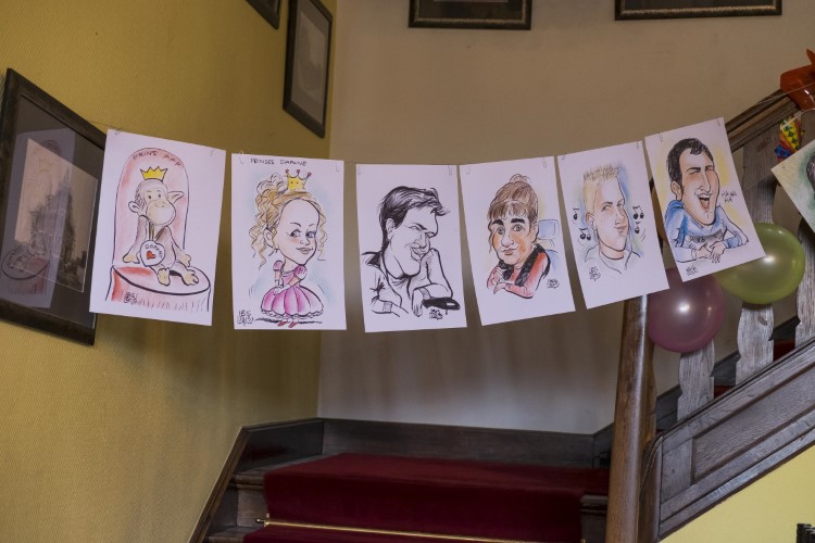 Langzaam druppelden onze gasten binnen, ze mochten direct met hun eigen gezelschap op de foto, met als achtergrond.. juist, spoken! Dit direct, om Marcel en assistenten de tijd te geven aan het einde van de dag een spookachtige herinnering mee te geven in de vorm van een met hun foto bedrukte tas!